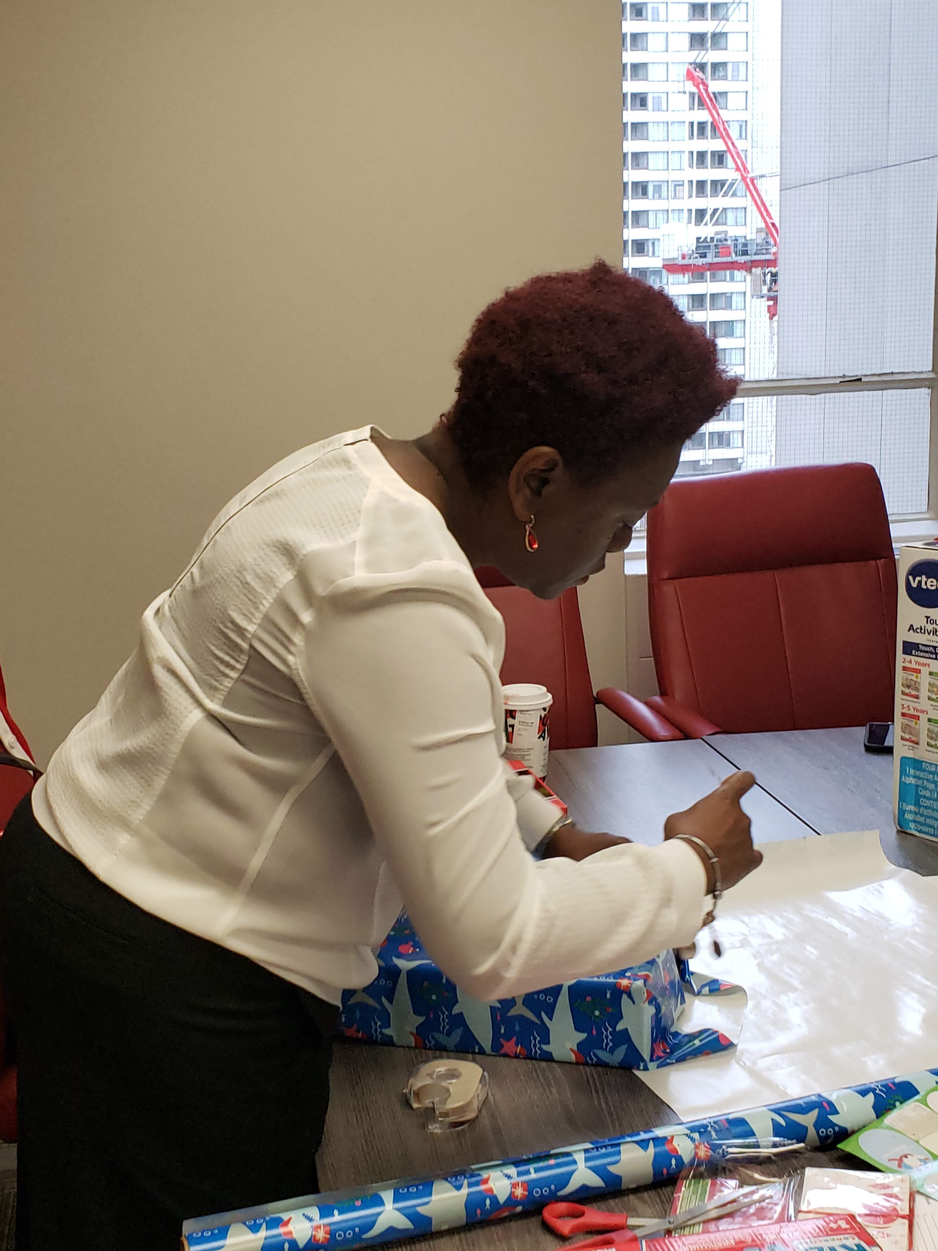 Wrapping Christmas presents for our sponsored family